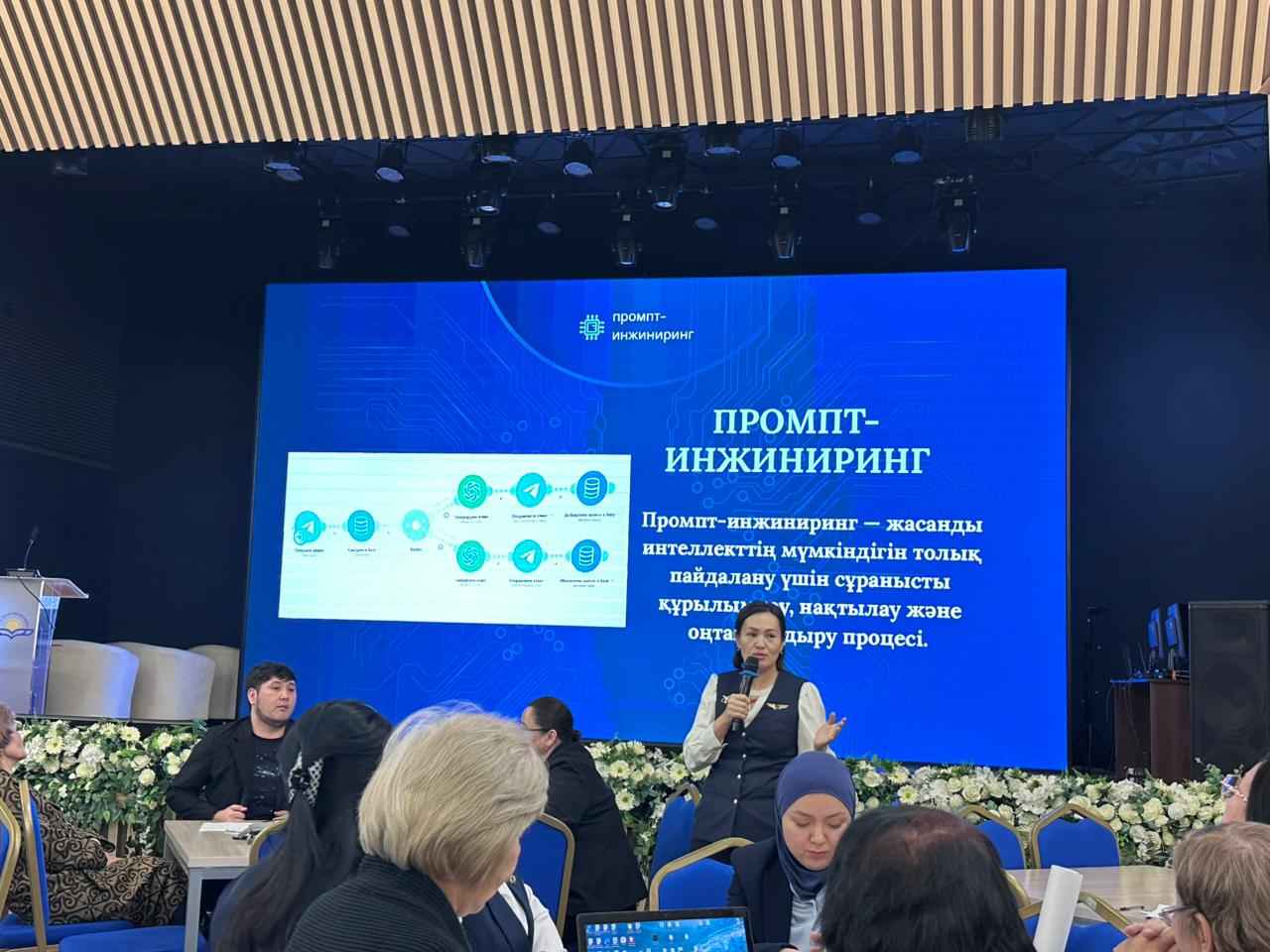 Іс-шара Азаматтық авиация академиясы колледжінің «Болашақ мансапқа арналған жасанды интеллект құралдары» тақырыбындағы презентациясымен басталды. Презентацияны Даулетханқызы Г., Суименова Л.А., Акилбекова Ж.С. және Никамбаева Н.М. дайындады.