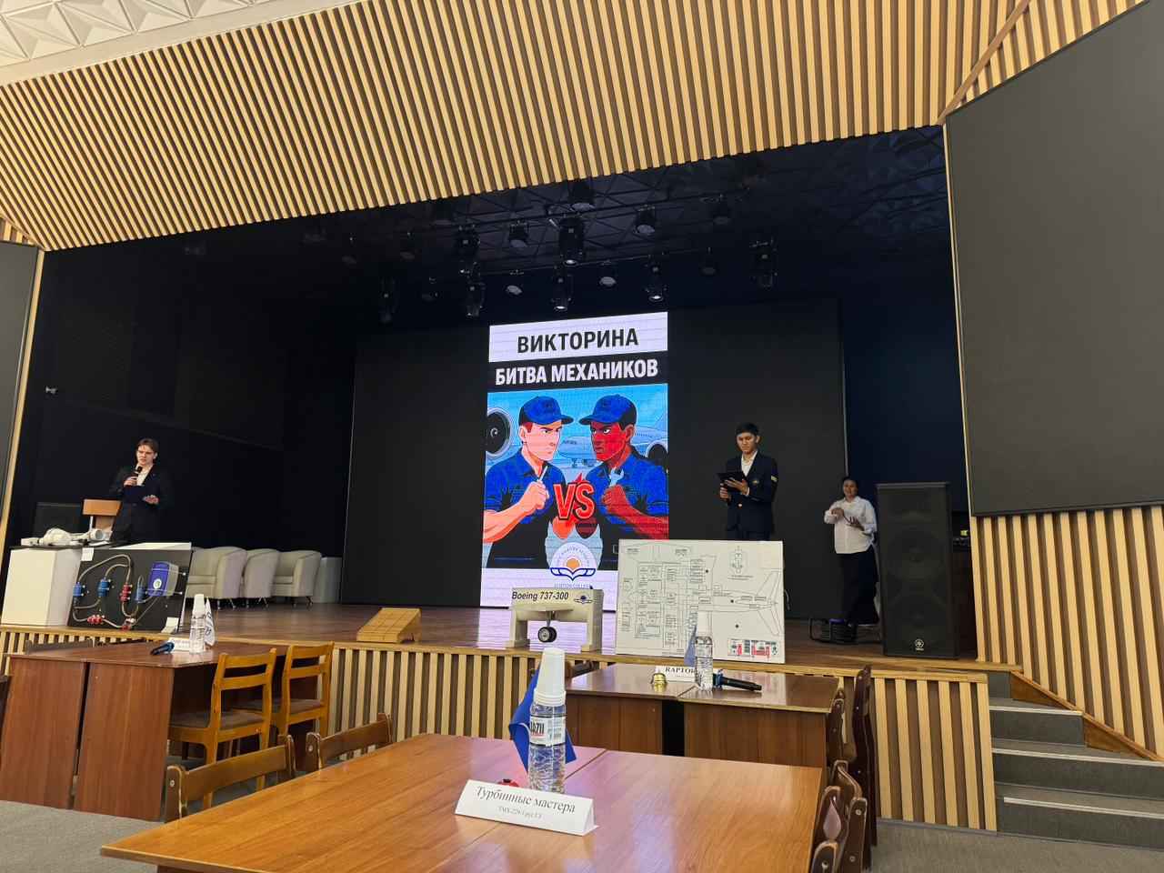 «Әуе кемелерін, авиациялық қозғалтқыштарды және радиоэлектрондық жабдықтарды техникалық пайдалану» пәндік-әдістемелік цикл комиссиясының онкүндігі аясында арнайы пән оқытушылары: Исламова М.Ш. және Забелин В.М. «Механиктер сайысы» викторинасын өткізді.